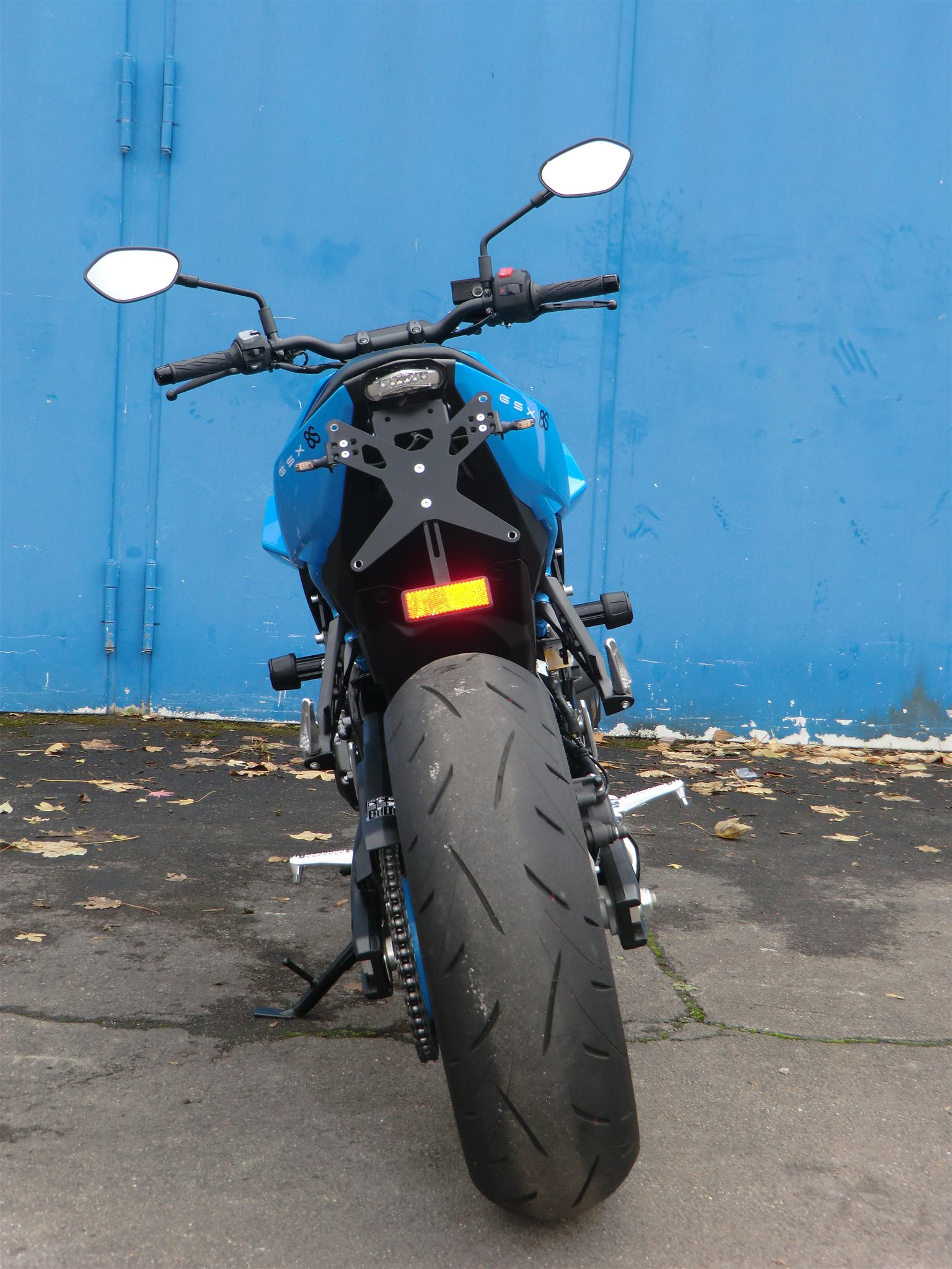 Vorführmotorrad, kurzes Heckteil, LED-Miniblinker vorne und hinten, Moto-Sturzpads